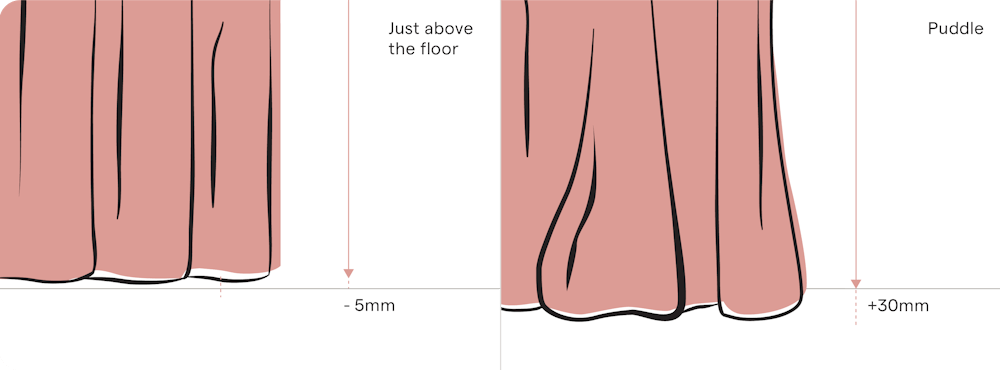 3. If you want a puddling effect, we recommend adding 30mm to your selected drop measurement.