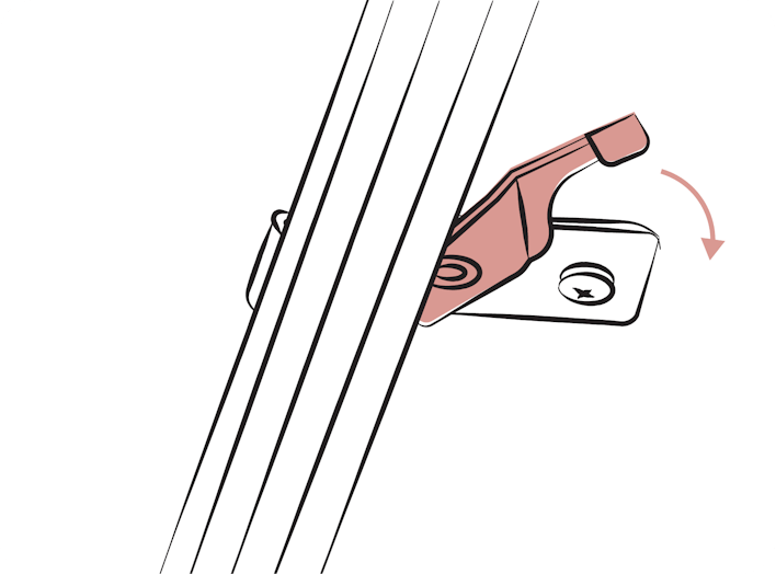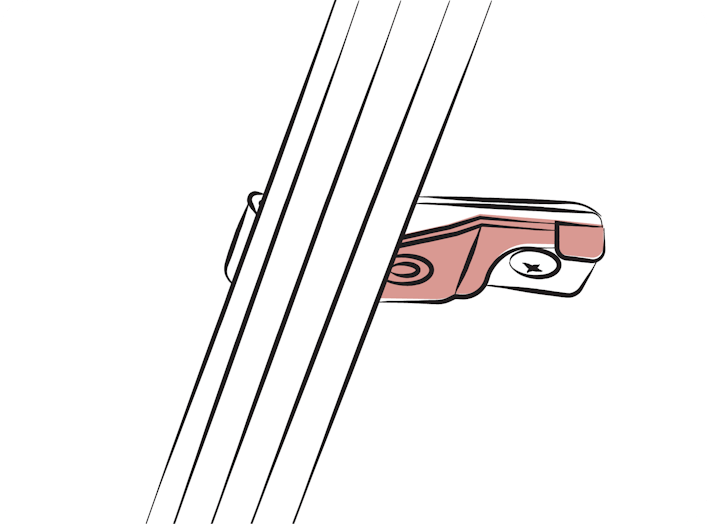 Connect your track to the brackets by gently clipping the small claw from the end of the bracket into the groove on the track. Hold it in place and use the lever at the back of the bracket to lock and tighten it onto the track.