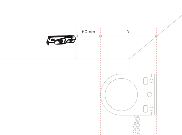 Or if you're installing top fix curtains, you will need to start by positioning your bracket at least 60mm from the wall.