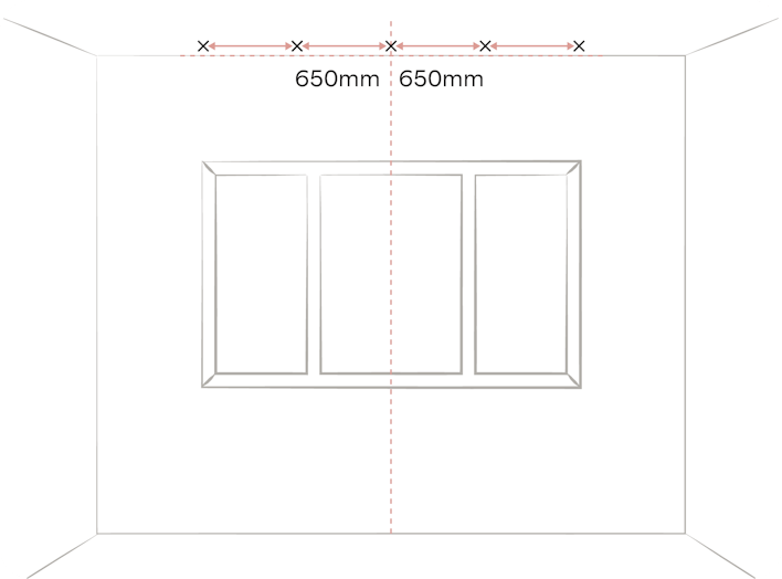 2. Place the remaining brackets evenly across the track between your outer brackets. We recommend 650mm between each bracket.