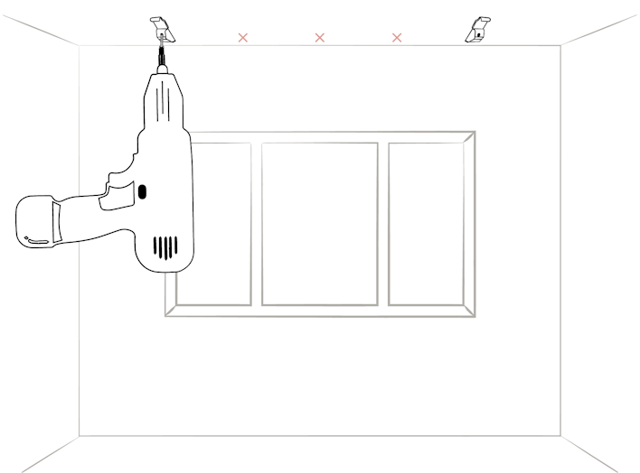 2. Using your measure points as a guide, fix your brackets to the ceiling.