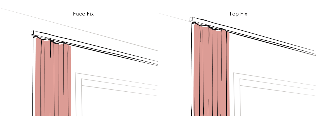 Top fix is ideal if your window is close to the ceiling or you installing inside a recess. If you have a cornice or would like a smaller curtain, face-fix is a great choice.